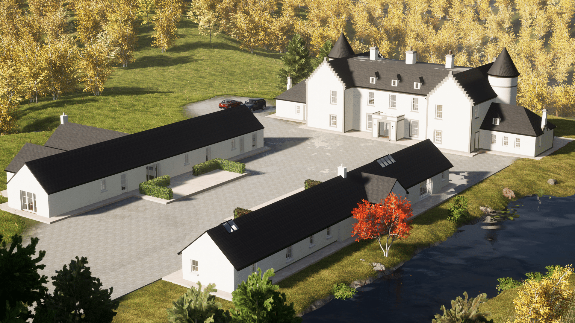 The designs offer a luxurious and impressive option for a 21st-century sporting lodge, featuring the best of Scots Baronial style, in a beautiful location in the Scottish Lowlands.