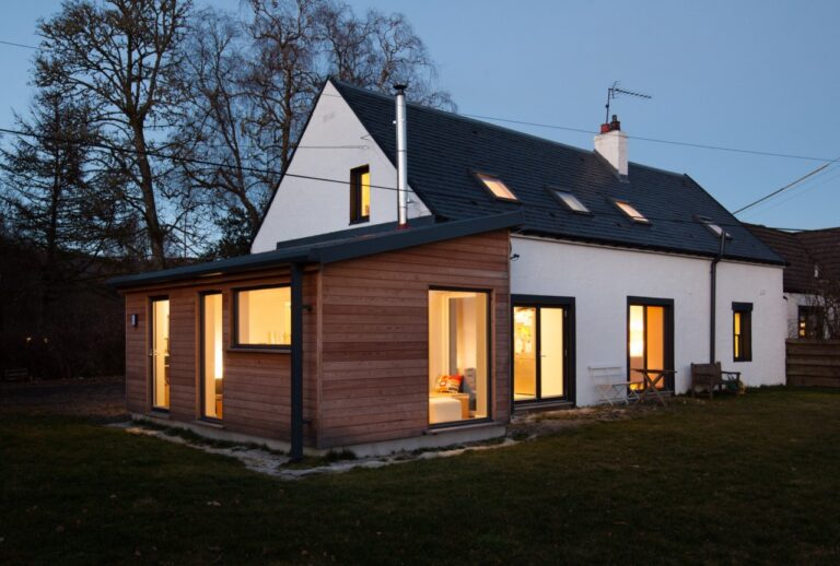 The project has hugely improved the living arrangements of the clients, giving them flexible, warm, light-filled contemporary-style living areas, and a bedroom each for the children. The choice of larch timber on the new extensions was how we chose to differentiate between the old cottage and the new additions and also fits in with other local architecture on the rural estate in which the cottage sits.